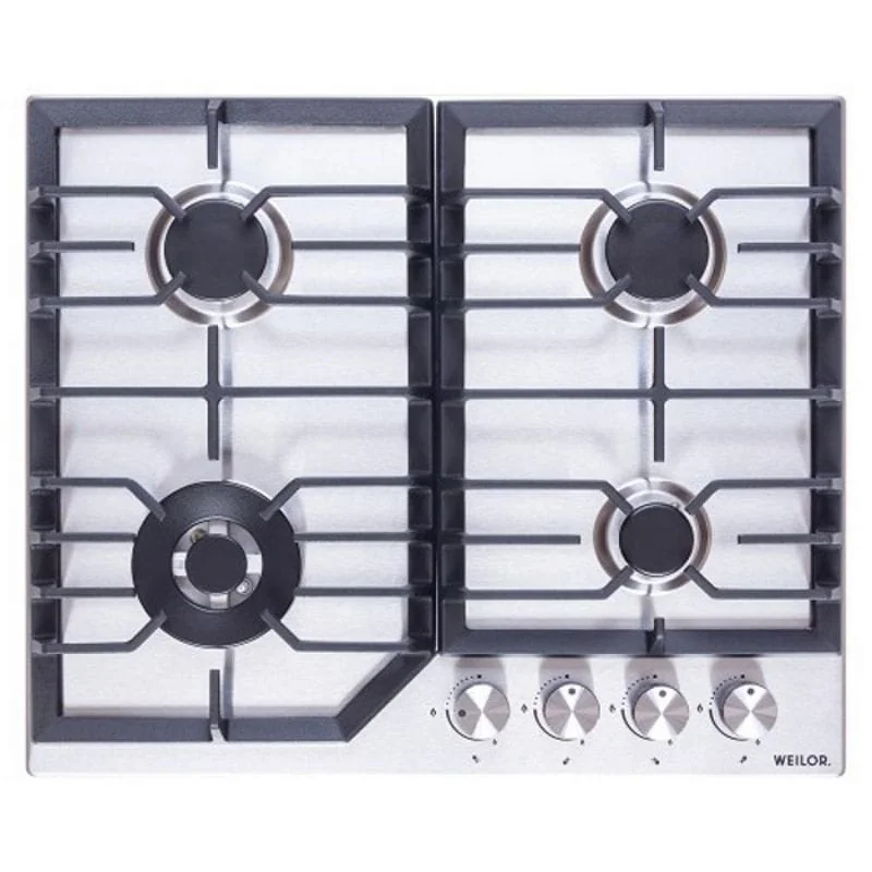 - Варочные поверхности Weilor оснащены системой «газ-контроль», которая автоматически блокирует подачу горючего вещества при отсутствии пламени и обеспечивает максимальную безопасность использования прибора.