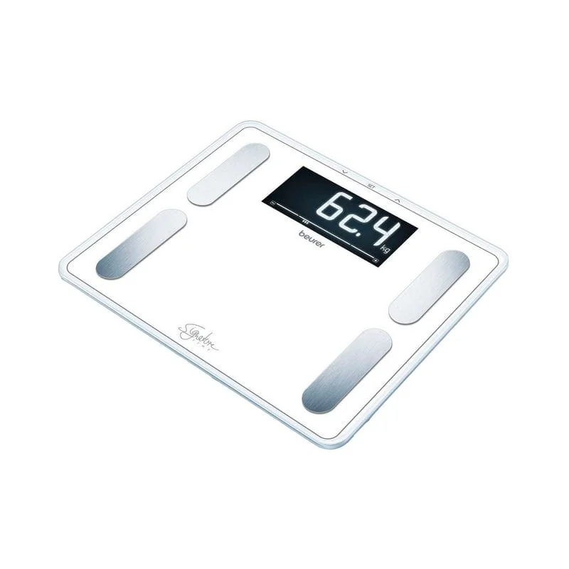Большие диагностические весы Beurer BF 410 с увеличенным максимальным весом и интерпретацией результатов. Определяют вес тела, жирую массу, содержание воды в организме, мышечную массу, костную массу, определяют обмен веществ и уровень физической активности ( BMR/AMR), рассчитывают индекс массы тела.