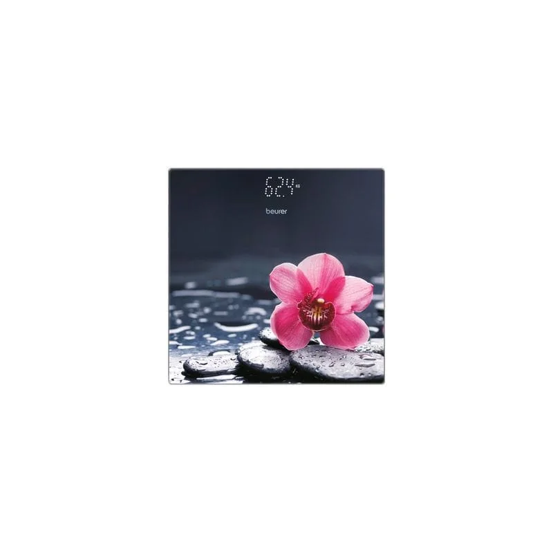 Безупречная внешность Напольные весы Beurer GS 215 Relax сделаны в дизайне с рисунком в виде фотопринта. Благодаря такому оформлению техника отлично вписывается в интерьер ванной комнаты, где обычно и располагают данный измерительный прибор. Фотопринт на стеклянной платформе выглядит стильно и не требует каких-либо дополнительных деталей для внешнего оформления.