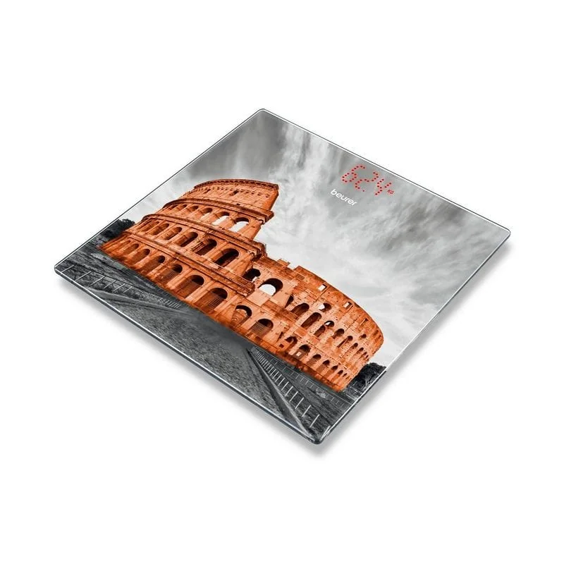 Дизайнерский стеклянный вес Beurer GS 215 Rome легко перенесет вас в древний город. Весы изготовлены из 8 мм небьющегося высокопрочного стекла, что говорит о его повышенной механической прочности, термостойкости и безопасности. Цифры высотой 27 мм легко читаются на белом точечно-матричном дисплее Magic – невидимый дисплей, появляющийся только в процессе измерения.