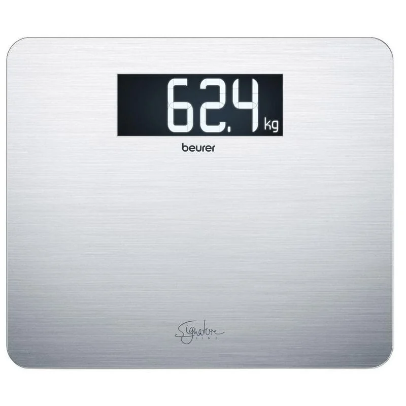 Весы с покрытием из нержавеющей стали Beurer GS 405 Signature Line - дизайн и функциональность в одном устройстве! Точные дизайнерские весы не только покажут результаты взвешивания, но и идеально впишутся в интерьер вашего дома как декоративный элемент. Большая платформа (2.8 х 35 х 30 см) из прочного стекла толщиной 8 мм со специальным покрытием от отпечатков пальцев (аnti-fingerprint) из нержавеющей стали — комфортное и безопасное использование. Цифры увеличеного размера (49 мм) с специально разработанным ЖК-шрифтом на современном черном дисплее в формате XXL (55 х 149 мм) с подсветкой — значения веса всегда можно легко прочитать даже при низком освещении. Удобное и энергосберегающее использование благодаря автоматическому отключению. Измеренные значения отображаются точно с шагом 100 г до максимального веса 200 кг.