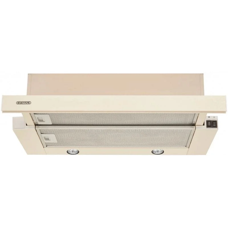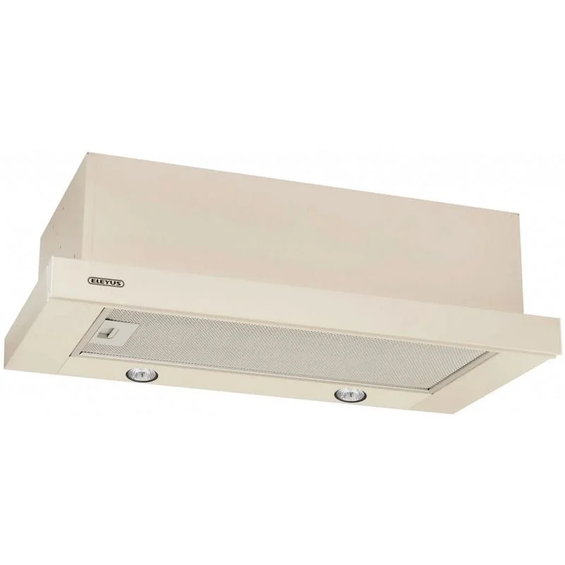 Кухонная вытяжка телескопического типа. Производительность турбины - 700 м³/час. Потребляемая мощность - 220 Вт. Размер - 60 см. Механическое управление (клавишные). Две скорости. Освещение - лампа галогенная 2x35 Вт. Рекомендуемая площадь - 18 м². Уровень шума - 49.5-60.9 дБ. Жировой фильтр - алюминиевый пятислойный. Угольный фильтр - опция (ELEYUS FW-Е14 - 2 шт). Выдвижная панель для увеличения площади забора воздуха. Гарантия - 5 лет.