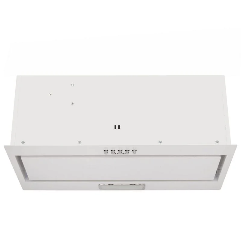 Вытяжка полностью встраивается в обычный кухонный шкафчик шириной 60 см. Видимой остается только передняя панель из нержавеющей стали, устойчивая к влаге и высоким температурам. Лаконичный дизайн вытяжки гармонично сочетается с кухней и в стиле минимализм, хай-тек или модерн.