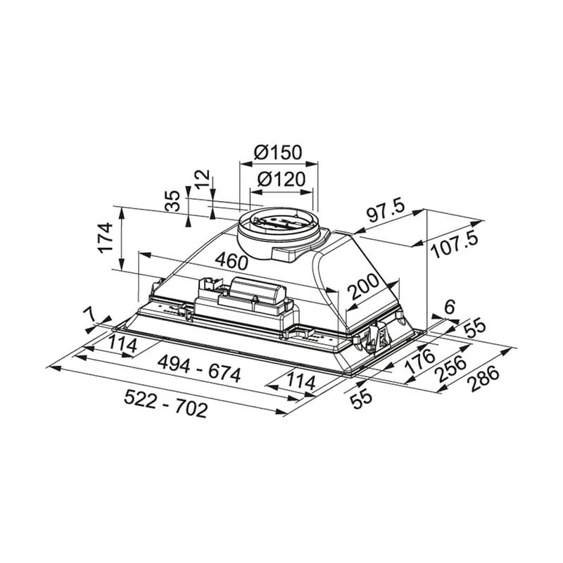 Усовершенствованная конструкция вытяжки - рамка крепится непосредственно к корпусу, что исключает вибрации и накопления загрязнений.