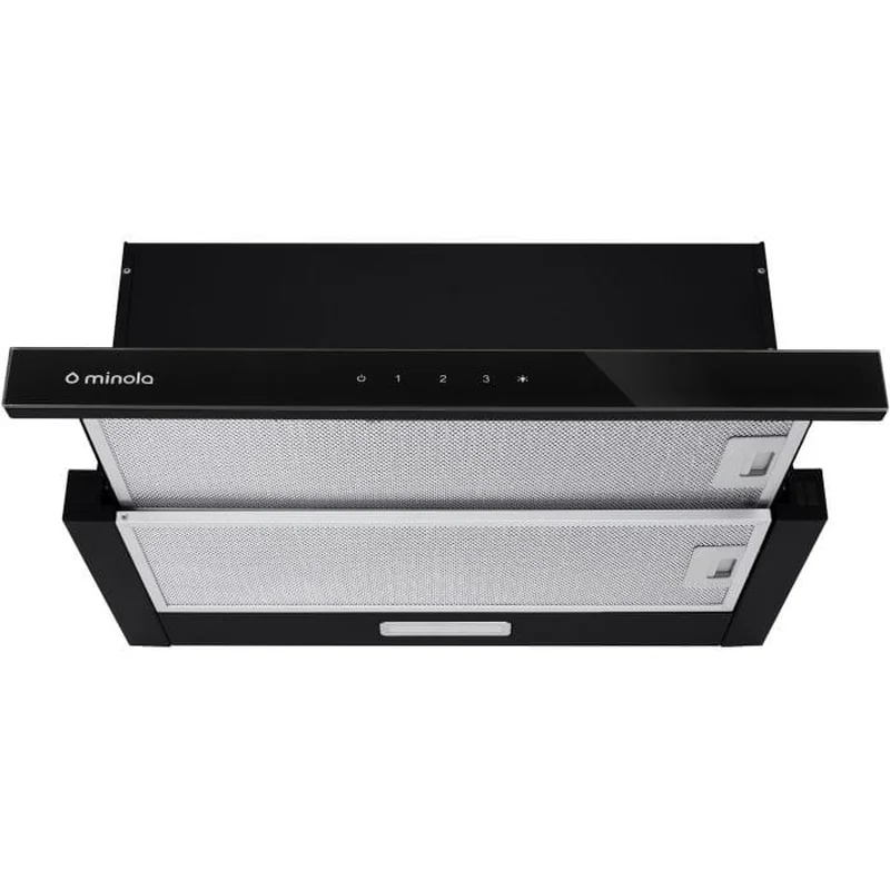 Кухонная вытяжка Minola HTLS 6734 1100 LED GLASS оборудована двумя трехслойными жировыми алюминиевыми фильтрами. Они обеспечивают надежную и эффективную защиту двигателя и остальных деталей вытяжки от попадания жира и грязи.